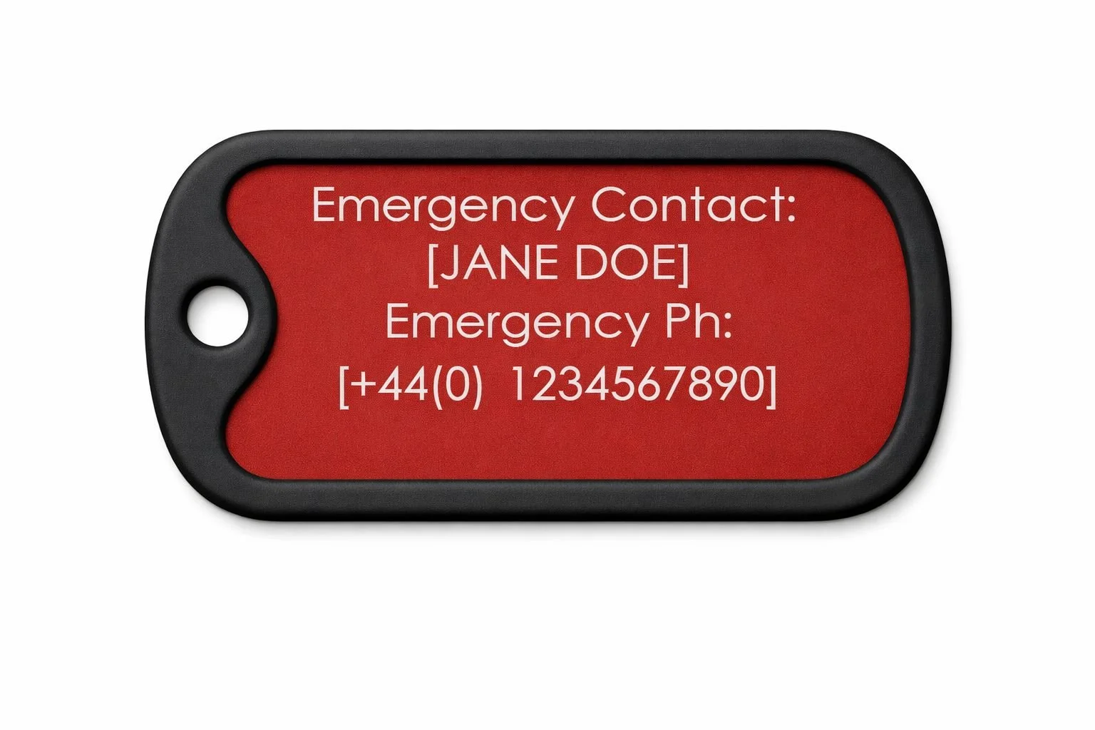 We also offer emergency contact tags with your details on the front and your emergency contacts details on the reverse side.