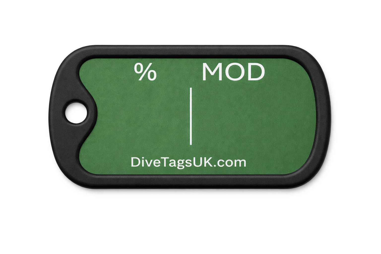 Manufactured from colour-coated aluminium, each tag is engraved on the front with your name or organisation, with writable areas for fill details such as mix %, MOD, and date. After use, tags can simply be wiped clean and reused for the next fill.